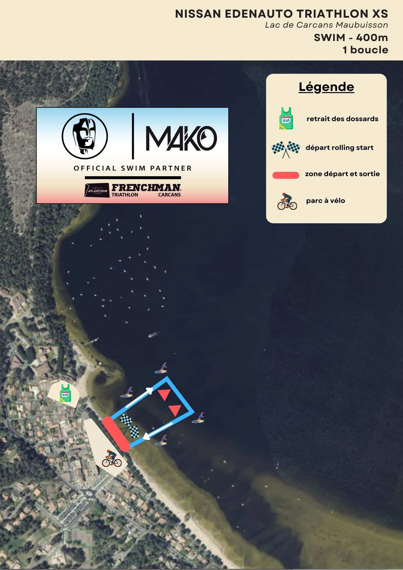 Une boucle de 400m avec un départ en rolling-start depuis la plage du Lac de Maubuisson.